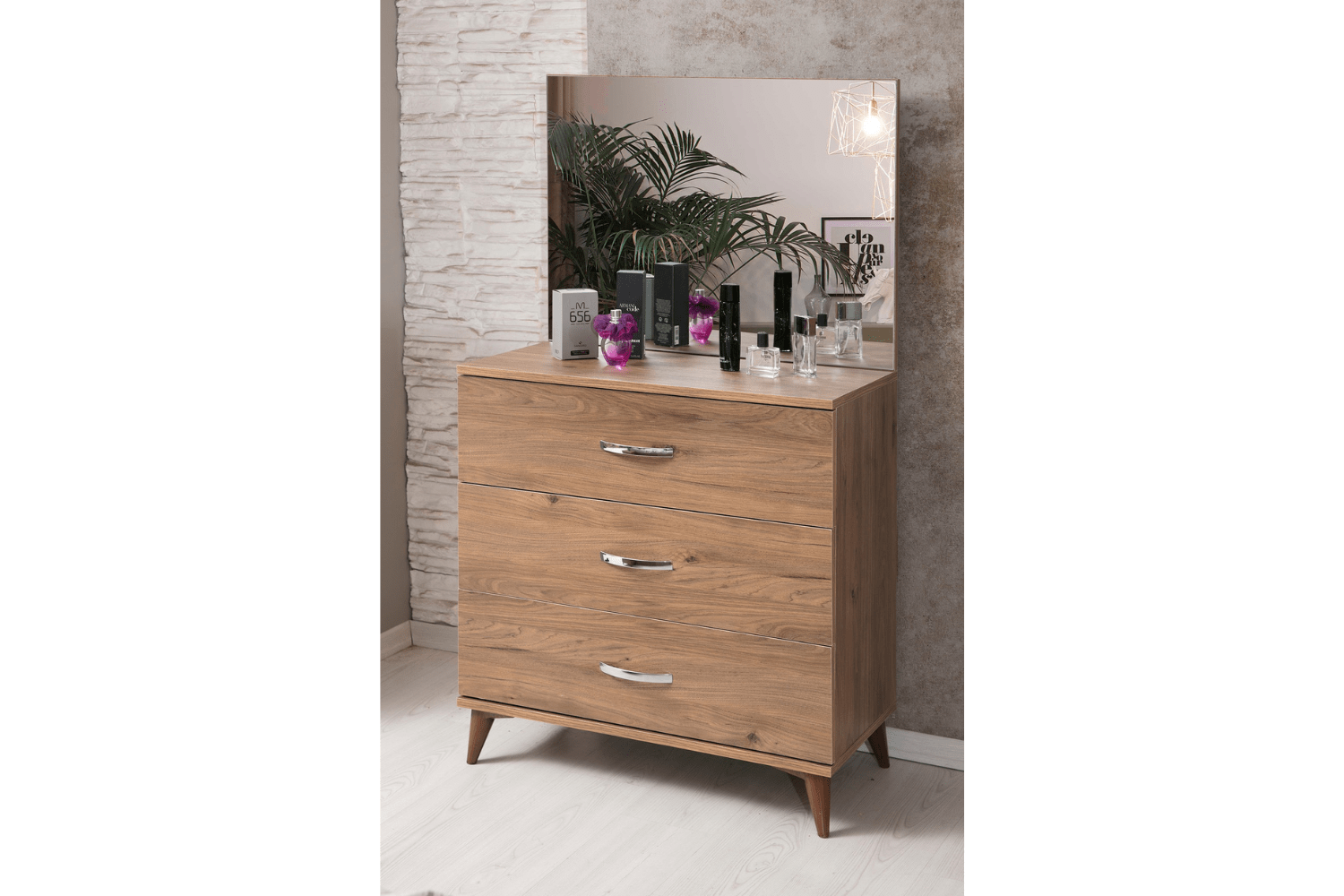 Commode avec miroir : 145 cm (hauteur) x 80 (largeur) x 41 (profondeur)