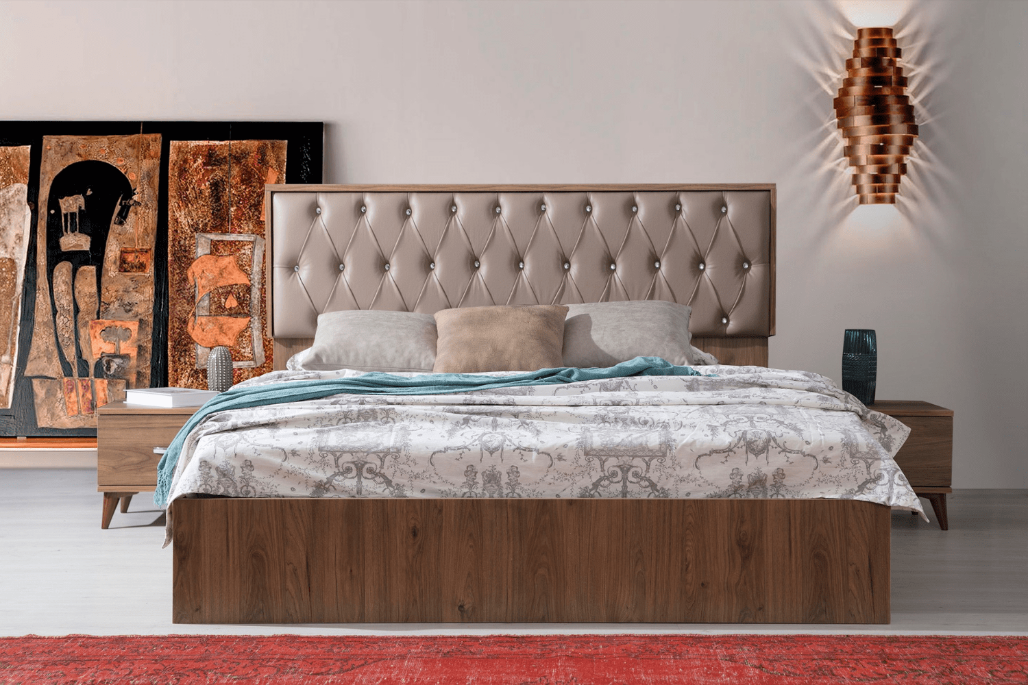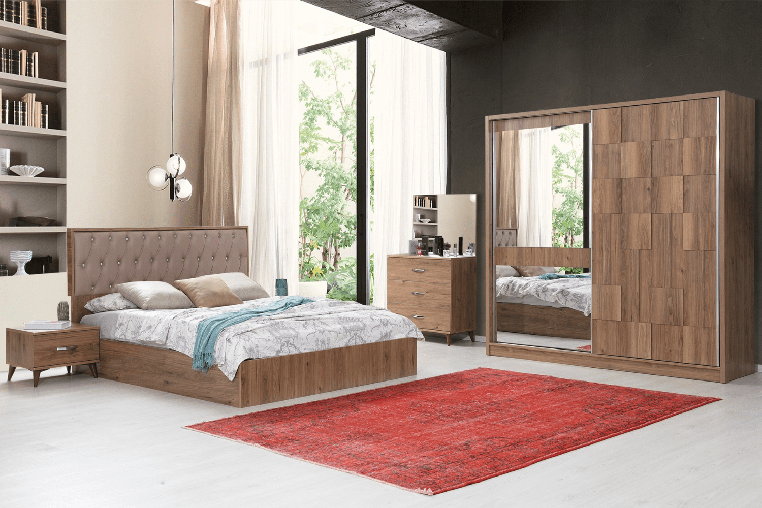 Illuminez votre chambre avec notre modèle complet GIZEM composée d’un cadre de lit, d’une armoire, de deux chevets et d’une commode (+ miroir). Une chambre chaleureuse qui vous apportera confort et bien-être.
