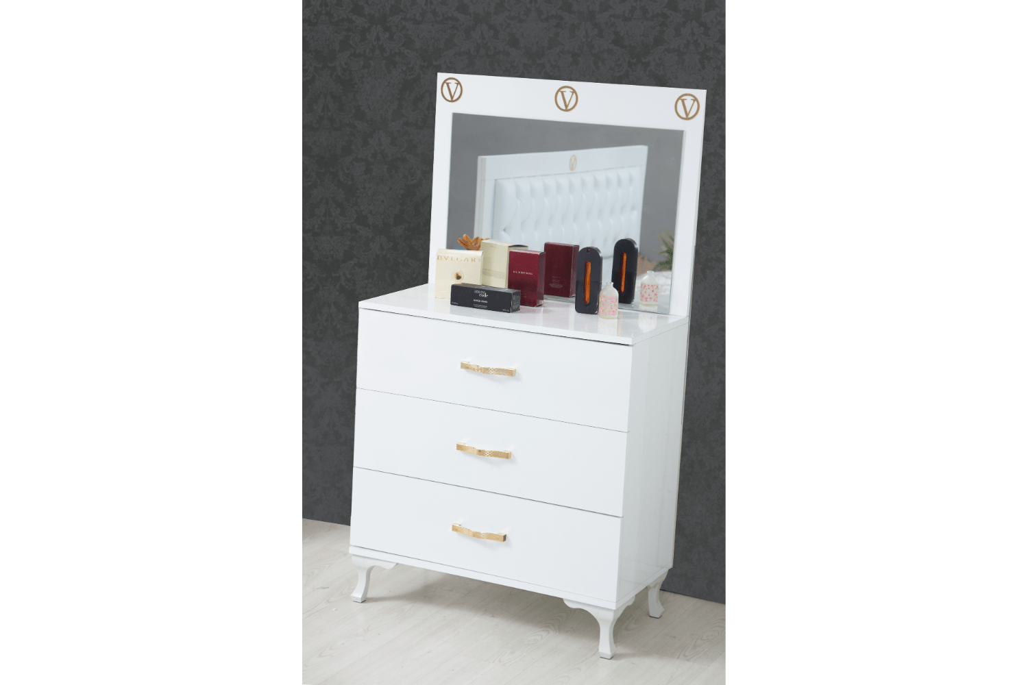 Illuminez votre chambre avec notre modèle complet NEW VERSACE composée d’un cadre de lit, d’une armoire, de deux chevets et d’une commode (avec miroir). Une chambre chaleureuse qui vous apportera confort et bien-être.