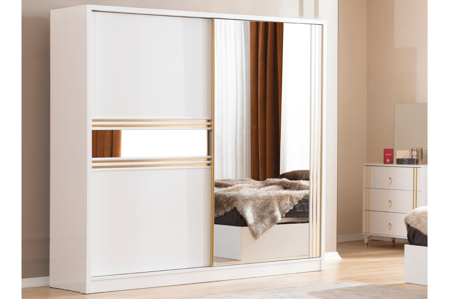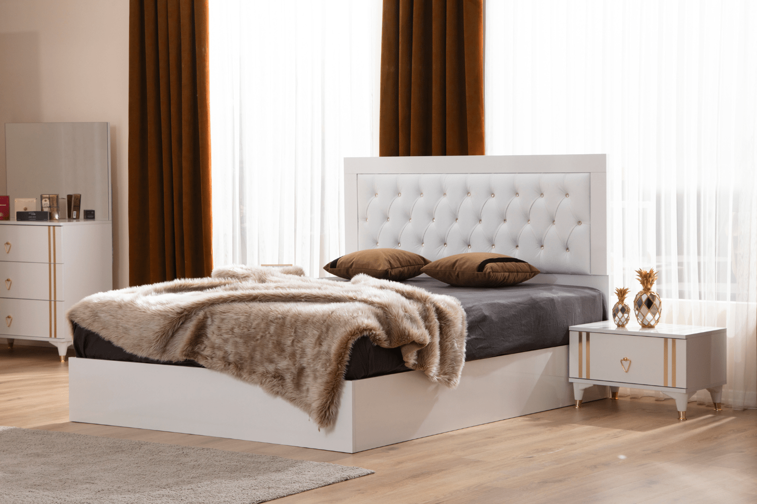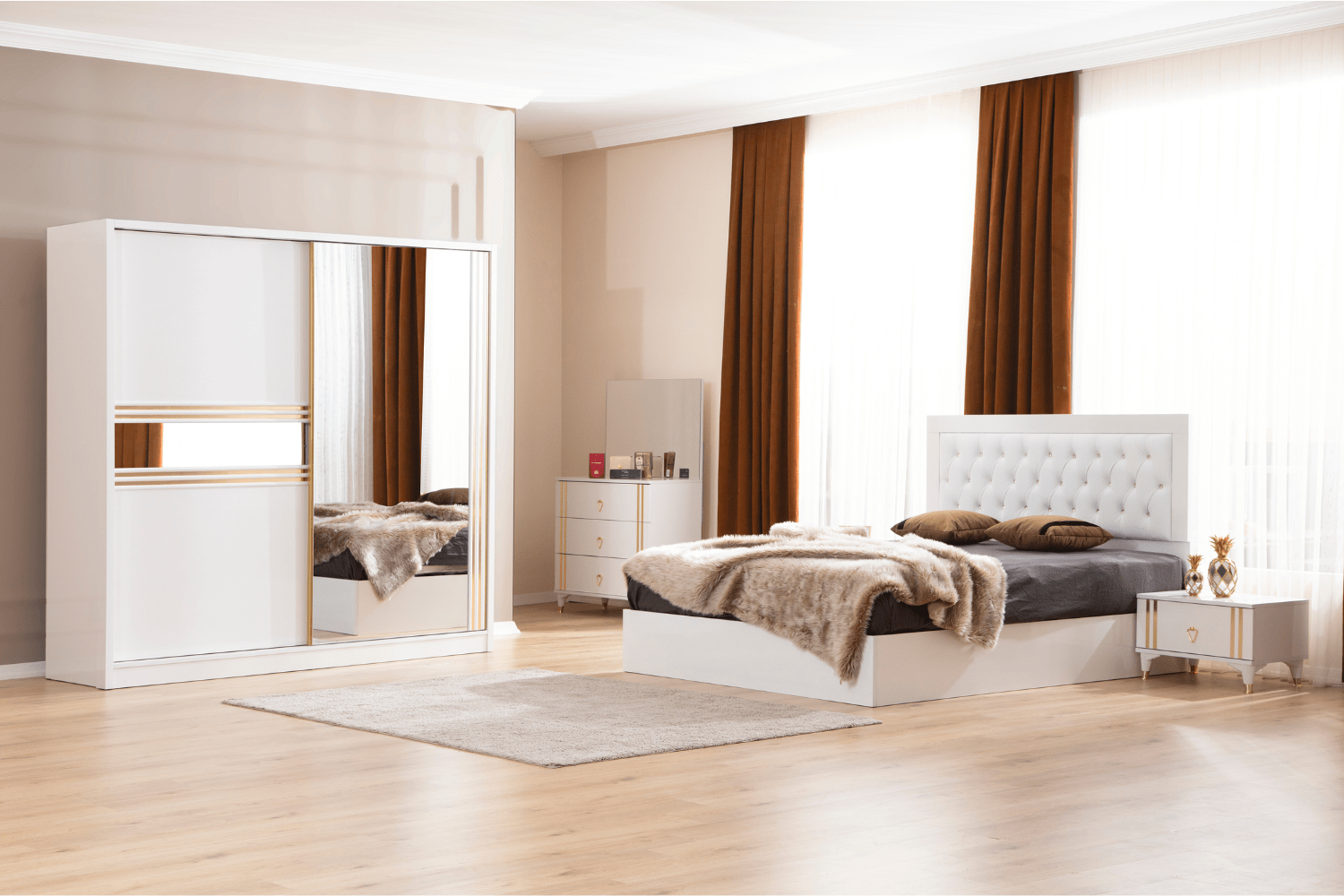 Illuminez votre chambre avec notre modèle complet SEDEF composée d’un cadre de lit, d’une armoire, de deux chevets et d’une commode (avec miroir). Une chambre chaleureuse qui vous apportera confort et bien-être.